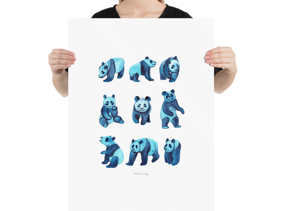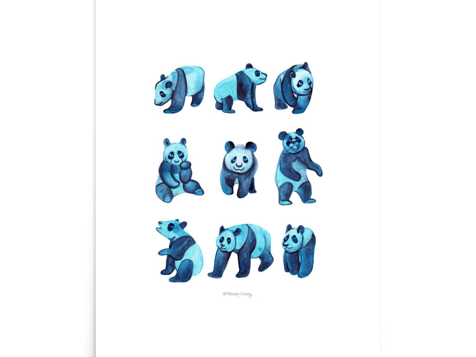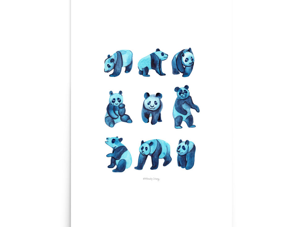 The Curious Panda – Classic Print highlights the panda in soft bluish tones, creating a calm and contemporary look. This variation offers a soothing touch, perfect for bringing a gentle pop of color to your space.