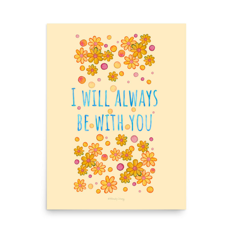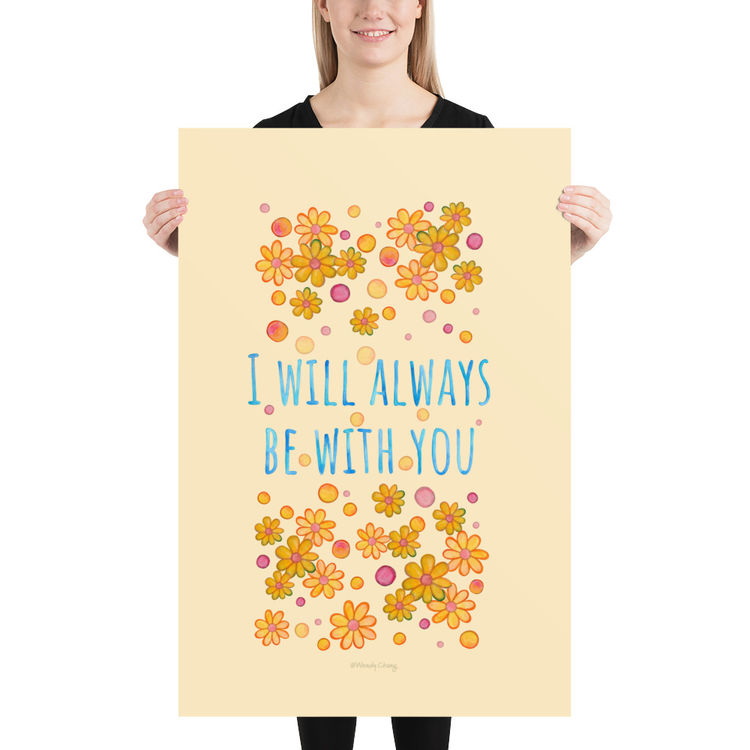 The Dragonfly Garden - Always With You Print combines cheerful florals with the heartfelt phrase “I will always be with you.” This uplifting artwork blends warmth and positivity, making it a meaningful addition to any wall.