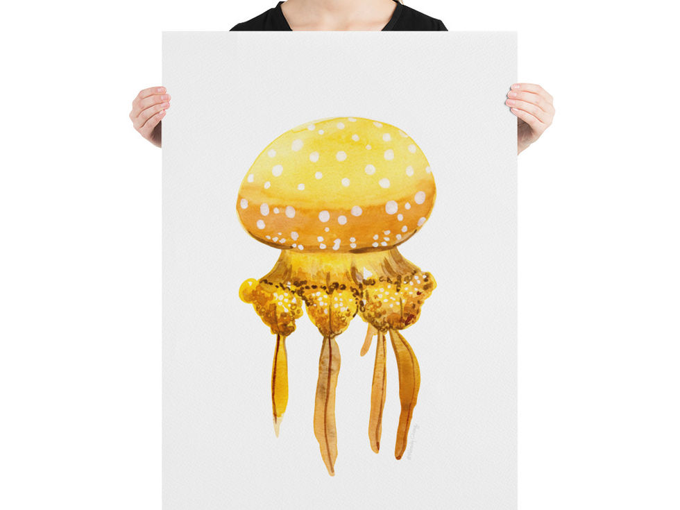 The White-Spotted Jellyfish - Yellow Print brings a bright and joyful touch with its sunny yellow tones. A playful yet elegant artwork that energizes any room.