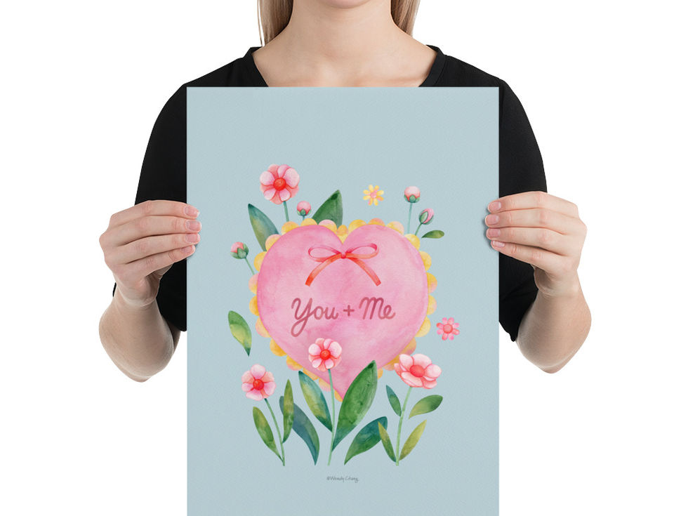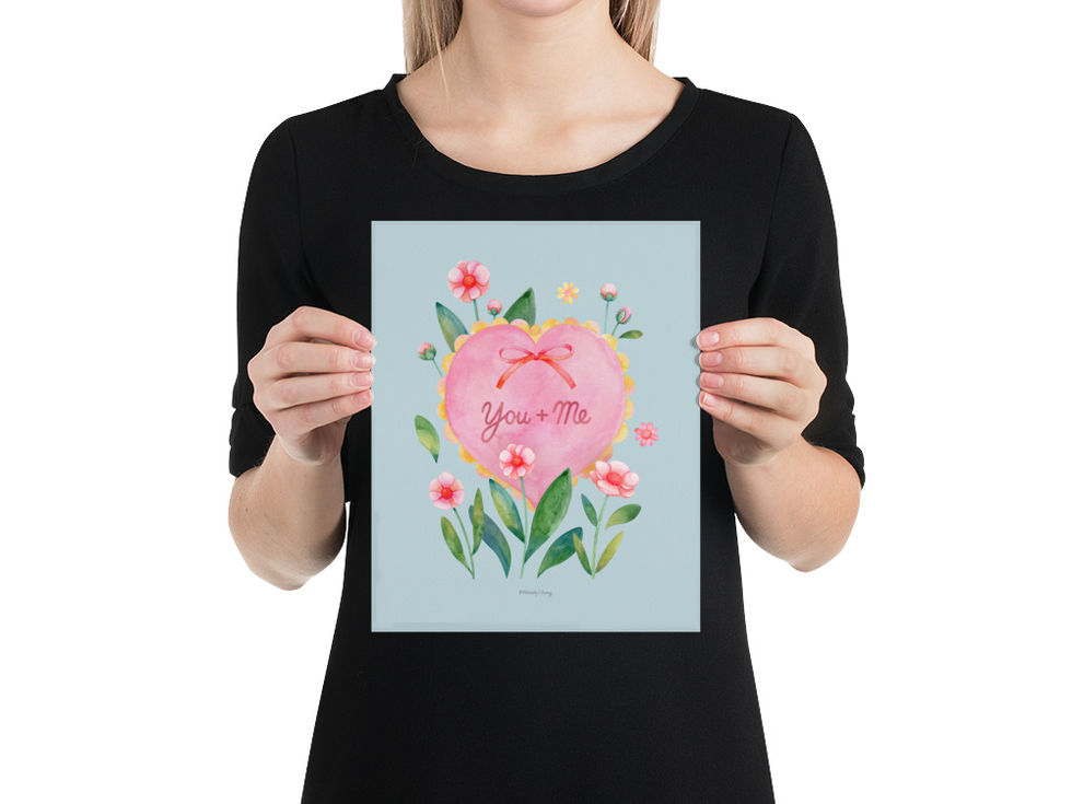 Set against a calm sky-blue background, this floral heart design creates a light and airy expression of togetherness. A gentle, serene piece that brings freshness and warmth to any space.