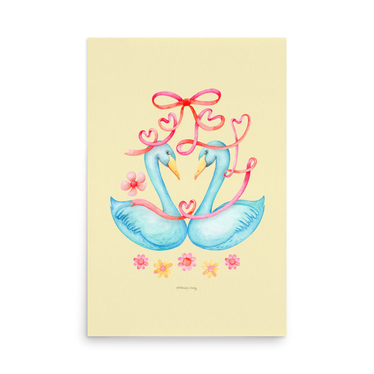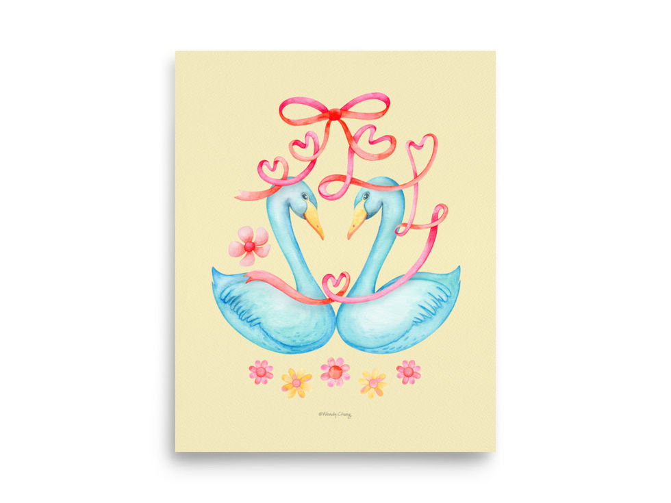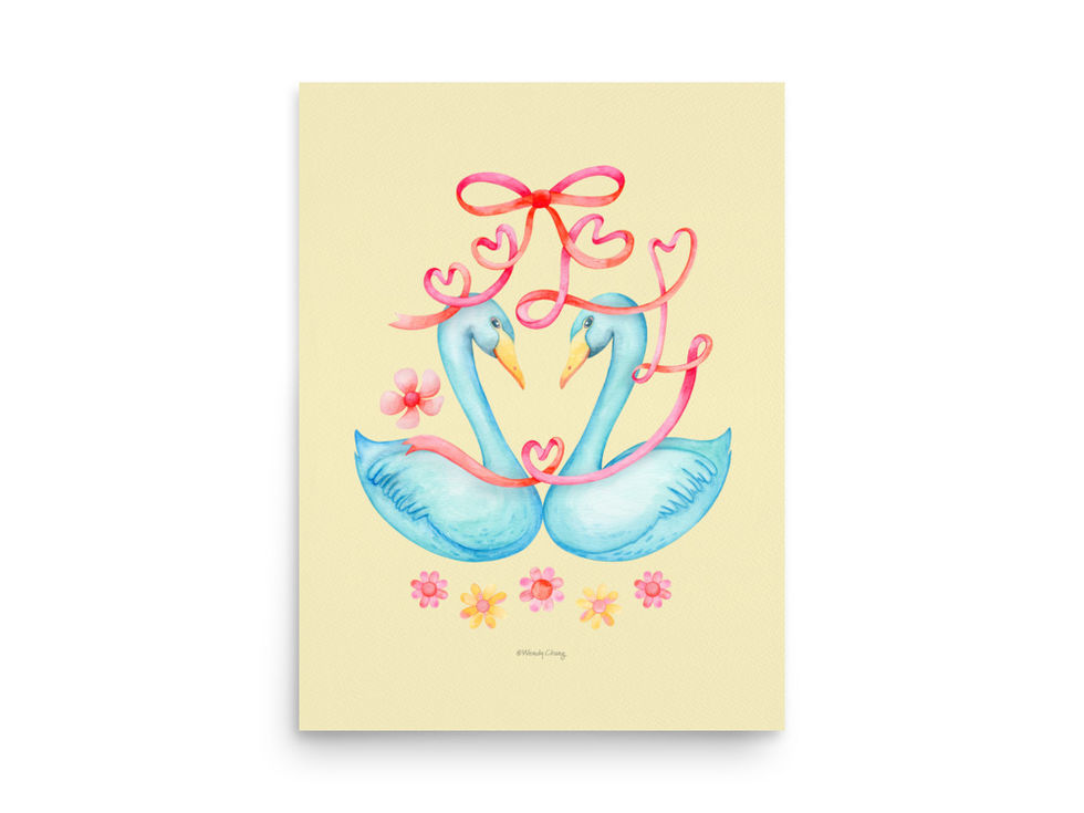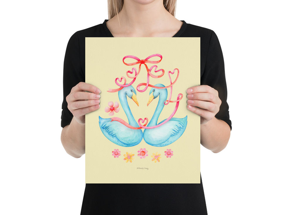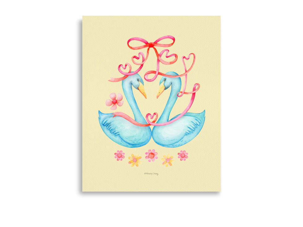 A soft buttercream background adds cheerful, nostalgic warmth to the Swan Love Knot illustration. This version feels cozy, joyful, and perfect for gifting or sentimental spaces.